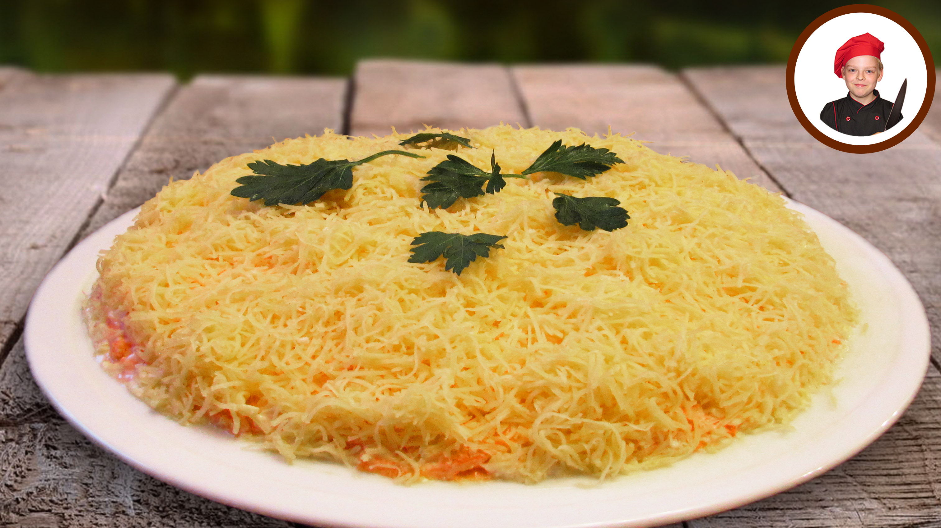 Салат по французски. Простой, аппетитный и сытный салатик. Подойдет на любой стол, даже на новогодний. Рецепт прост и в тоже время оригинален. Ингредиенты: - Лук репчатый - 1 шт.; - Яблоко - 1-2 шт.; - Яйцо куриное - 4 шт.; - Морковь - 1-2 шт.; - Сыр - 150 грамм; - Майонез; - Зелень на украшение. #салат #рецепты #Апухтин #кулинария