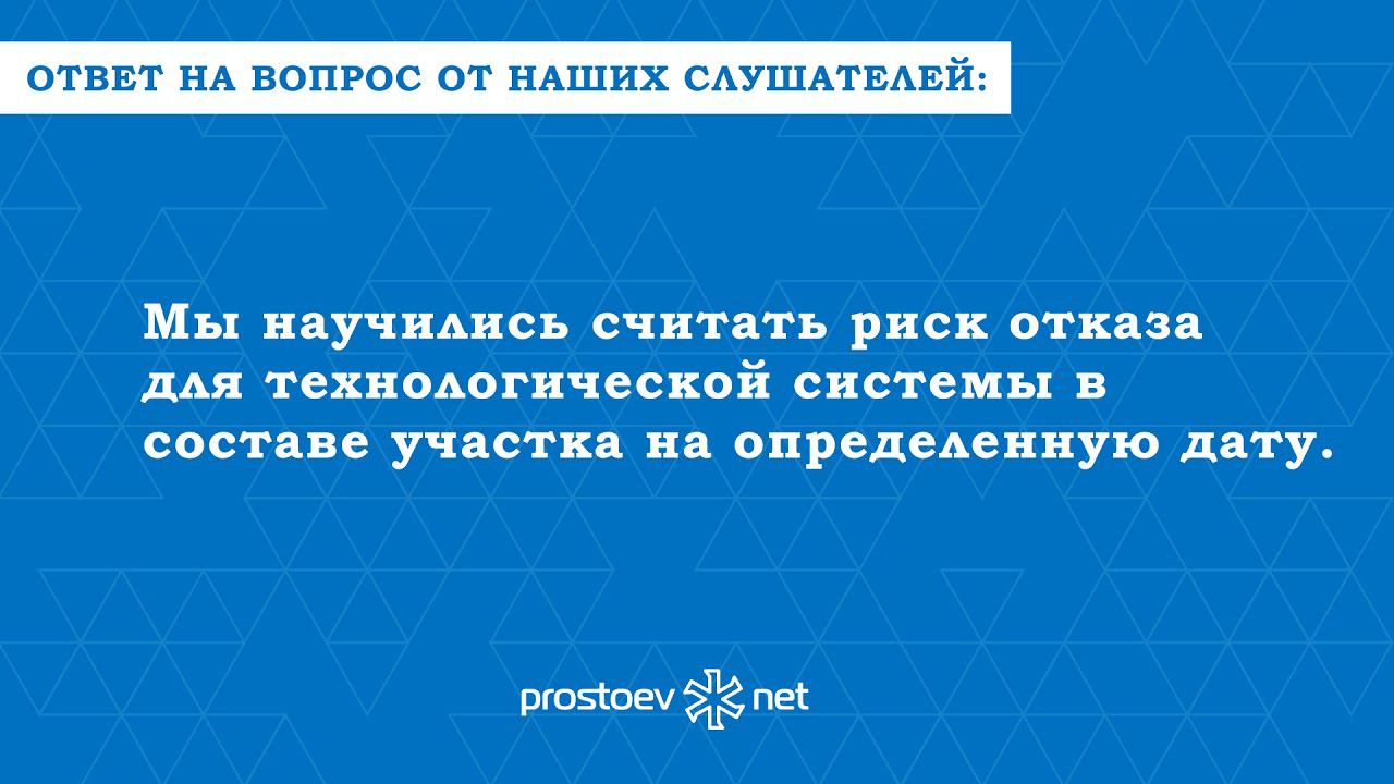 Простоев.НЕТ. #вопрос_ответ_обучение_тоир. Вы разрабатываете библиотеки надежности компонентов и реестры рисков для компаний? ТОиР. RCM https://youtu.be/ngIIwSDxguk Мы информационно-образовательный проект по вопросам организации управления процессами поддержания надежности, проведения технического обслуживания и ремонтов технологических систем и оборудования. Подписывайтесь на наш YouTube канал https://www.youtube.com/user/prostoevnet _ Спрашивает Светлана.: «Вы разрабатываете библиотеки надежности компонентов и реестры рисков для компаний?». Отвечает Дмитрий Скворцов, директор по развитию ООО «Простоев.НЕТ»: 0:00 prostoev.net 0:29 Вы разрабатываете библиотеки надежности компонентов? 0:31 Если кратко, то да. 0:36 Шире отвечу на ваш вопрос, то есть мы делаем библиотеку надежности в привязке к тому оборудованию, которое у нас работает. 0:43 То есть мы берем технологическую систему конкретную, оборудование связано между собой потоками продукта, либо там потоки энергии, и по ним считается карта рисков. 0:55 Мы научились считать риск отказа на определенную дату для какой-то технологической системы в составе цеха, участка или установки. 1:05 Мы научились делать оценку стоимости работ по дефекту, то есть сколько стоит работа по этому дефекту этого узла в составе оборудования. 1:10 И мы научились рекомендовать стратегию по этому дефекту. Это на текущий момент наш статус методологический. _ Мы в соцсетях: Facebook https://www.facebook.com/www.prostoev... VK https://vk.com/prostoev__net Linkedin https://www.linkedin.com/groups/8464641 Одноклассники https://ok.ru/group/58505577300000 Инстаграм https://www.instagram.com/prostoevnet/ _ http://www.prostoev.net - Информационно-образовательный портал Управления ТОиР #prostoevnet #простоевнет #анализ_рисков #тоир #rcm #RCM #управление_надежностью #надежность_оборудования #библиотеки_надежности #реестры_рисков