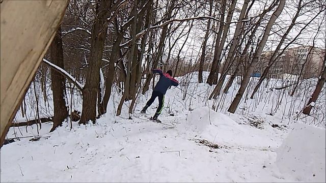 Катался в лесу на горных лыжах в стиле 90х
