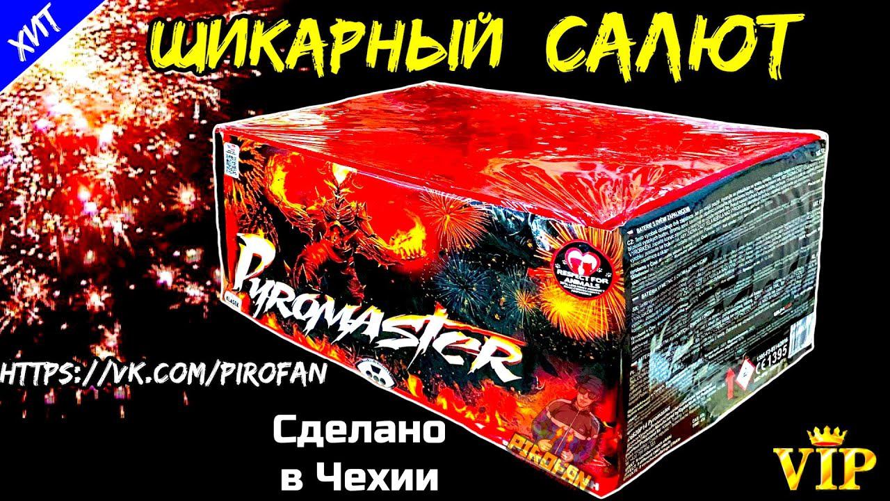 https://vk.com/PiroFan - официальный магазин Салют 66 залпов средних "PyroMaster" (Веерный) из Чехии - Калибр: 20мм = 0,8" дюйма - Время действия: 45 секунд - Высота выстрела: 25 метров - Гарантия и сертификат от ПироФан