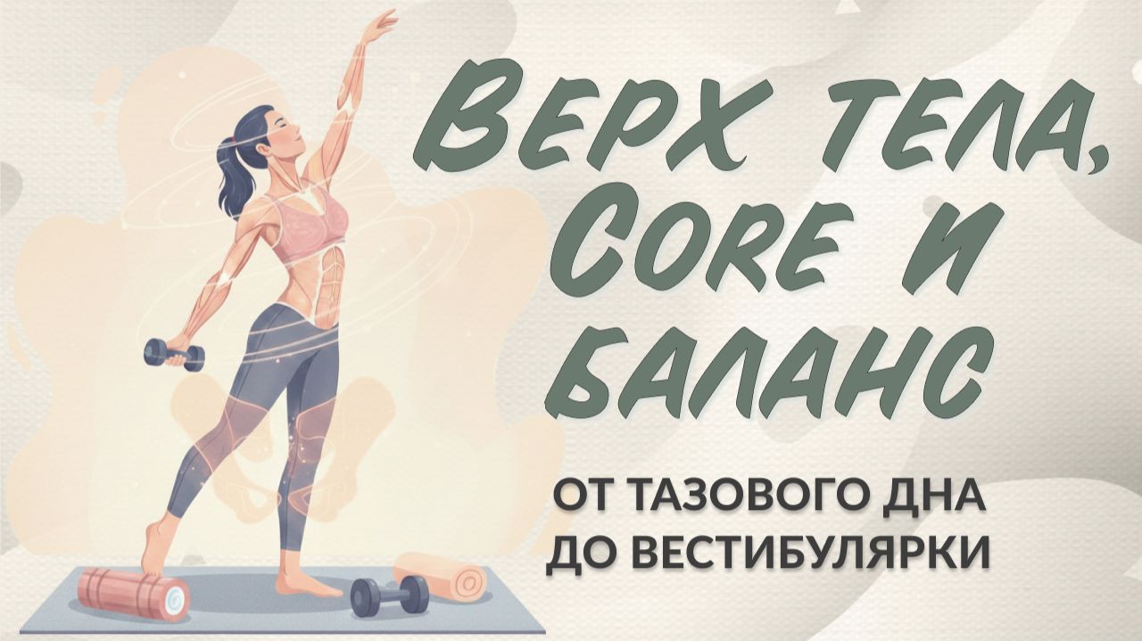 Комплексный подход к здоровью и красоте верхней половины тела. Мы будем раскрывать грудную клетку, работать над тонусом рук без перегрузки, и добавим неожиданные, но важные элементы: активацию мышц тазового дна и работу с вестибулярным аппаратом. Оборудование: коврик, ролл, валик из полотенца, отягощение 3-6 кг Поделитесь в комментариях вашими ощущениями после тренировки😇 ---------------------------------------------------------------------------------------- Если понравилась практика, вы можете оставить лайк, комментарий и подписаться на канал, чтобы не пропускать новые видео: https://rutube.ru/channel/41375179/ Переходите в телеграм-канал: https://t.me/+hTRQfZfgTjcyZmYy Там больше интересного и полезного. Составление индивидуальных программ дыхания и тренировок https://t.me/elena_demina55
