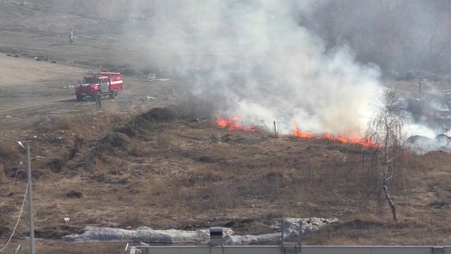 Горит сухая трава - опасная пора для дачников!