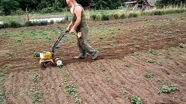 Обработка картошки мототяпкой Чемпион. К сожалению звук плохой.
