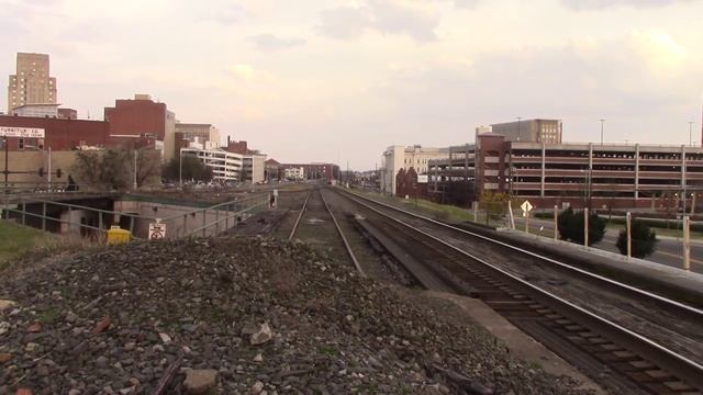Мощный американский тепловоз везет на высокой скорости красивый пассажирский состав
