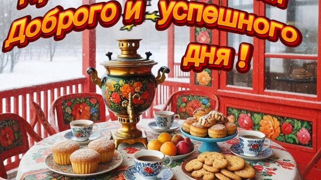 В уютной зимней террасе на круглом столе царит истинная русская красота — изящный чёрный самовар, украшенный яркими цветочными узорами, готов подарить тепло и уют. Вокруг — разнообразные сладости, которые делают чаепитие ещё более приятным и душевным. Пусть каждый глоток чая подарит вам радость, вдохновение и зарядит хорошим настроением на добрый и успешный день! Присоединяйтесь к этому маленькому празднику уюта и гармонии. ☕🌸 #чаепитие #зимняятерраса #самовар #русскиетрадиции #уютныйдень #сладости #доброеутро #тепло #вдохновение #тёплыемоменты