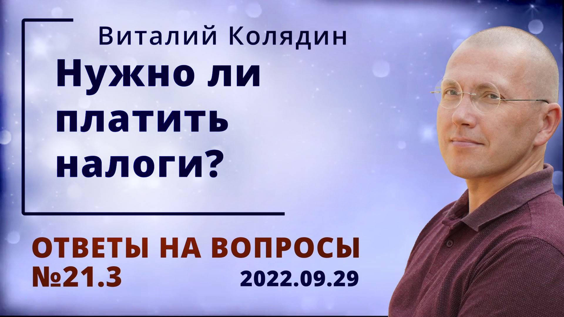 Ответы на вопросы №21.3 Нужно ли платить налоги. Виталий Колядин. 2022.09.29