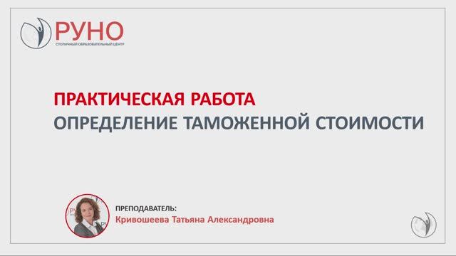 Практическая работа. Определение таможенной стоимости | РУНО