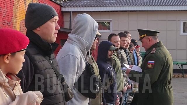 Бугульминская газета. Из Бугульмы в Африканский корпус и на СВО уехали 14 человек Сегодня утром на территории военного комиссариата Бугульмы состоялся торжественный митинг, посвященный отправке военнослужащих: на специальную военную операцию убыл один мужчина из Красноярского края, другие 13 человек отправились для службы в Африканском корпусе. В числе военнослужащих, подписавших контракт с Министерством обороны России, проводили и бугульминца, остальные мужчины из разных субъектов Российской Федерации: из соседнего Октябрьского Республики Башкортостан, Москвы, Нижневартовска, Ангарска, Самары, Иркутской, Челябинской, Тамбовской, Тульской областей и Краснодарского края. Провожали бойцов почетные гости и воспитанники кадетской школы. Слова напутствий и пожеланий сказали заведующий сектором по делам молодежи и спорту, и.о. руководителя исполкома БМР по социальным вопросам Константин Круглов, руководитель отдела по взаимодействию с органами МВД и Вооруженными силами Альметьевской епархии протоиерей Евгений Романов, имам-хатыб Центральной мечети Баязит хазрат Раупов и военный комиссар города Рафаэль Миннетдинов. Мужчин поблагодарили за ответственное решение — встать на защиту интересов Родины, пожелали беречь себя, слушаться командиров, поддерживать друг друга и обязательно писать родным и близким. В завершении митинга военный комиссар города по традиции вручил военнослужащим письма маленьких бугульминцев с добрыми словами в адрес бойцов.