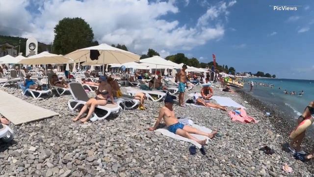 Сочи Лазаревское пляж Одиссея сегодня 22 июля 2024. Обстановка на пляже море и погода сейчас