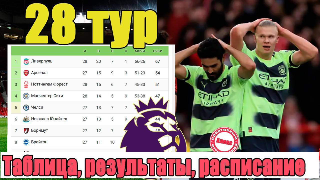 Чемпионат Англии по футболу (АПЛ). Таблица, расписание, результаты. Итоги всего 28 тура.