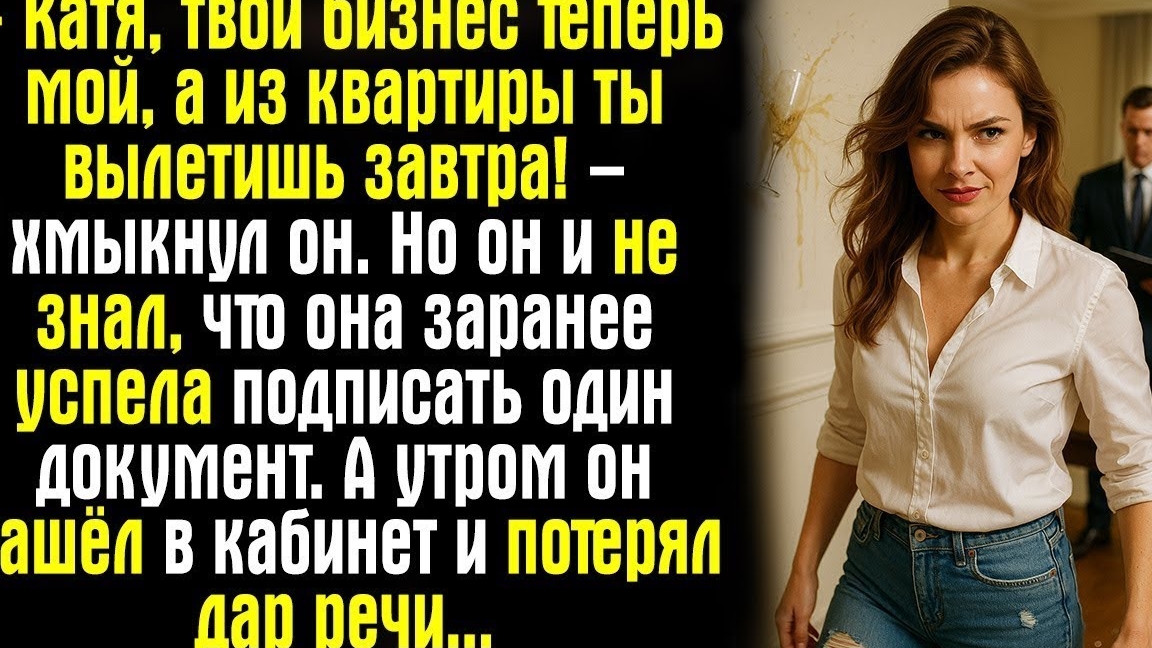 – Катя, твой бизнес теперь мой, а из квартиры ты вылетишь завтра! – хмыкнул он. Но он и не знал...