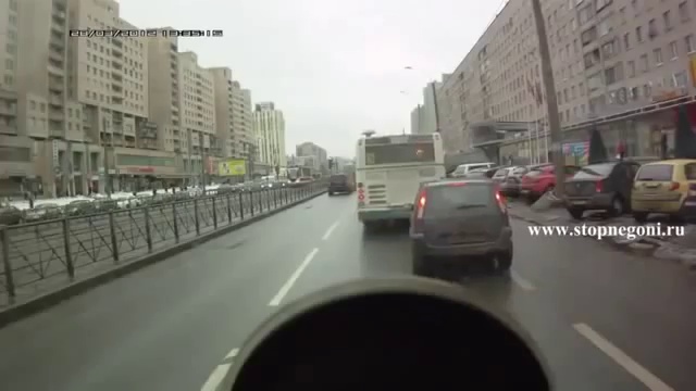 Обиженный водитель легкового авто решил наказать автобус, за то,что тот не пропустил его,отходя от остановки.