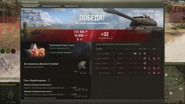 'Скушал' одну корочку и две мякушки. Натиск. 20241229 2115. ИС-4. Степи.