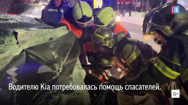 В Салехарде столкнулись Kia Rio и рейсовый автобус