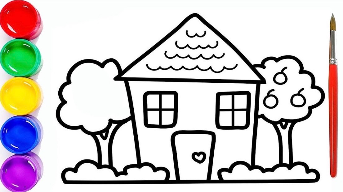Мультик раскраска для детей и малышей. Как нарисовать рисунок дом