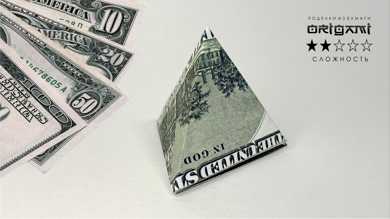 Пирамида из купюры для Удачи. Манигами - Оригами бумажные поделки из денег.