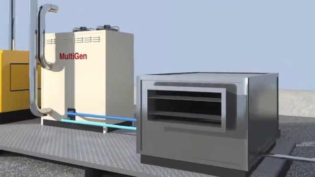 Water from air using the waste exhaust gas heat from a Diesel generator. The MultiGen is a tri-generation system that uses the wast exhaust gas heat from a diesel generator to produce clean water and cool air suitable for Air conditioning.