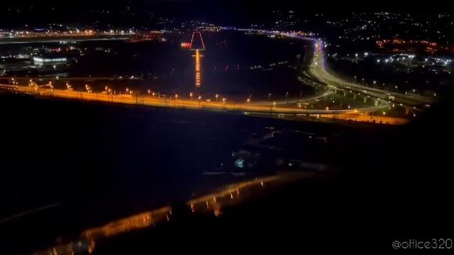 Красота, заход на посадку в ночное время, вид из кабины пилотов