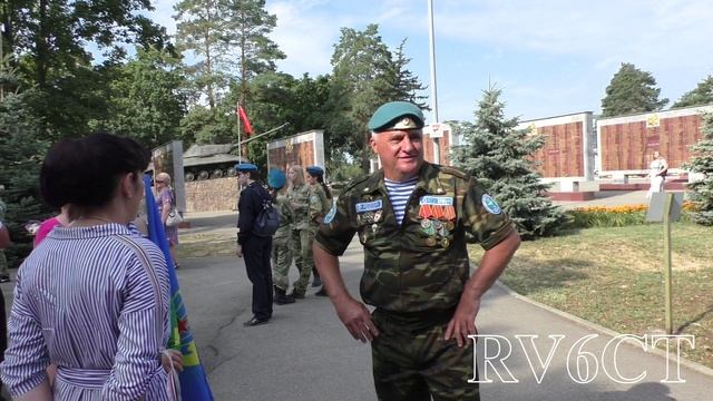 Ветераны воздушно-десантных войск, ребята из клуба «Юный десантник Кубани» и жители района, на площади Победы в Лабинске, 2 августа 2023 г перед началом официального празднования Дня ВДВ