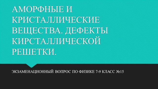 АМОРФНЫЕ И КРИСТАЛЛИЧЕСКИЕ ВЕЩЕСТВА ДЕФЕКТЫ КИРСТАЛЛИЧЕСКОЙ РЕШЕТКИ