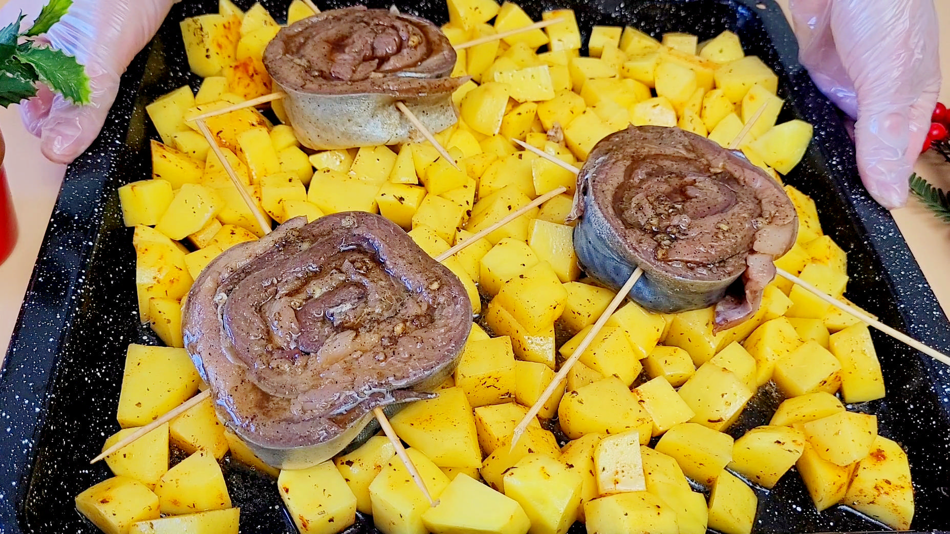 Такую рыбу со вкусом Нового года съедят моментально. Просто скручиваю, протыкаю шпажками и в духовку