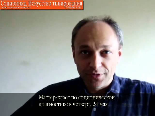 Мастер-класс по соционической диагностике Владимира Львова в Москве 24 мая - семинар, на котором можно легко разобраться в своем типе личности и в причинах, по которым в этом вопросе столько ошибок. Между тем, задача легко решается. Приходите и убедитесь! Четверг, 24 мая, 19 часов. Подрбности: http://www.socioboom.ru/training/master_class