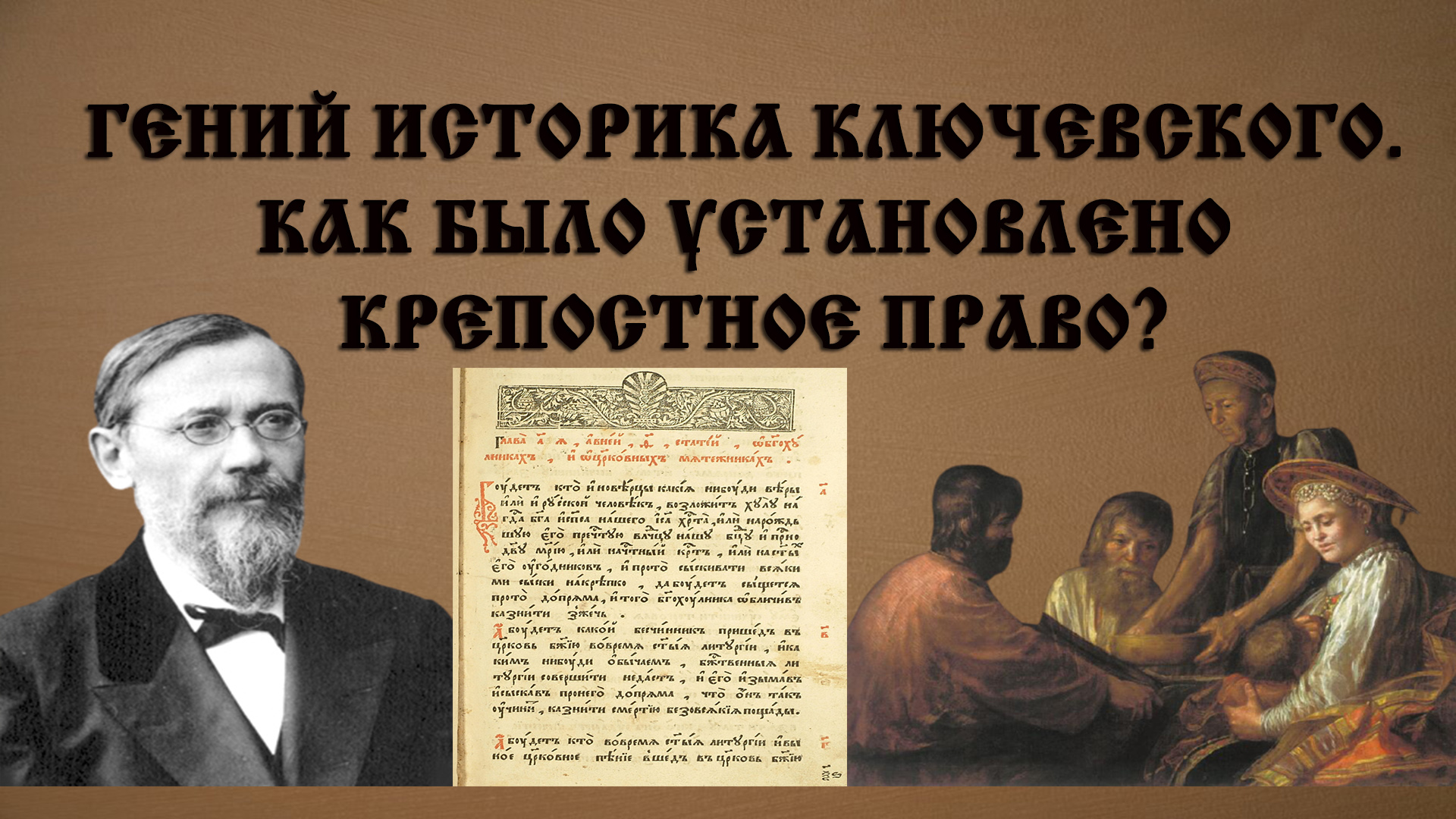 Великий учёный XIX века Василий Осипович Ключевский (1841-1911 гг.) является признанным классиком исторической науки, образцом лектора, преподавателя и исследователя. Однако несмотря на то, что историческая наука за более чем 100 лет с момента его смерти сделала огромный шаг вперёд, Ключевский даже сейчас остаётся непревзойдённым мастером говорить просто о сложных исторических процессах. Примером тому служит то, как Ключевский проследил и объяснил установление крепостного права в России. В чём гений Ключевского? Что давали законы о холопах? Что такое «крестьянские животы»? И в чём последствия Соборного уложения? Обо всём этом – в новом ролике канала «ИсторияДляВсех»! Впервые ролик вышел у нас на ютубе 24.12.2021. Смотреть этот ролик на Youtube: https://youtu.be/ZKouO45SHvM Мы на Youtube: https://www.youtube.com/c/ИсторияДляВсех Дзен: https://zen.yandex.ru/id/622cf7fc8b26266f04c07e14 Rutube: https://rutube.ru/channel/25421960/ Telegram: https://t.me/IstoriyaDV ВКонтакте: https://vk.com/istoriyadv Twitch: https://www.twitch.tv/historydv ТикТок: https://www.tiktok.com/@istoriyadlyavsekh Автор канала на сайте ВКонтакте: https://vk.com/id33616984 ЖЖ: https://igor-gaivor91.livejournal.com/profile Твиттер: https://mobile.twitter.com/IgorGaiv Съёмка, монтаж, сведение звука, продвижение (Олег): https://vk.com/qlook Помочь каналу: Карта Сбербанка: 4276 5500 1696 2881 ЮMoney: 410012978794589 #ключевский, #крепостноеправо, #соборноеуложение, #историяроссии, #законыохолопах, #холопствовроссии, #положениехолопов, #средневековаярусь, #русскоекрестьянство, #крестьянствовроссии, #урочныелета, #юрьевдень, #историякрестьянства, #крепостныекрестьяне, #тягло, #царьалексеймихайлович, #россияxviiвека, #крепостнаязависимость, #повинностикрестьян, #историяновоговремени, #курсрусскойистории, #ютуб, #youtube, #яндексдзен, #rutube, #рутуб, #историческийканал, #историядлявсех, #научнопопулярныеканалы, #рассказываетисторик