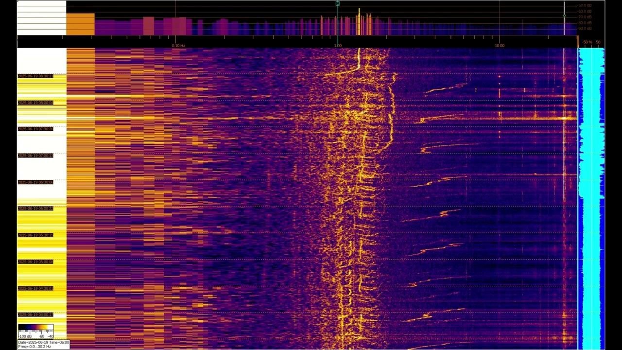 Геомагнитная активность обычно на частотах до 5 Гц и зависит от Солнечной активности. На более высоких частотах спектра могут присутствовать сигналы сверхдальней связи и др. Детали в этих плейлистах: EMF monitor https://youtube.com/playlist?list=PLiRg2YCbXcwn41BHqADKVBep_TgVq6XUN Очень Низкая Частота ~ Very Low Frequency https://youtube.com/playlist?list=PLiRg2YCbXcwnp5DxM4PnSs7k_Rnypaqek SIGNALS IN THE GROUND https://youtube.com/playlist?list=PLiRg2YCbXcwl6f3Bf5arHbGSOCNE5U71O поддержать канал: 8-999-654-93-44