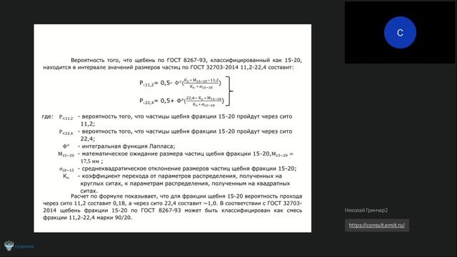 Влияние и учёт дисперсии гранулометрического состава минеральных компонентов при проектировании состава асфальтобетона и контроле качества асфальтобетона. Возможность классификационной оценки по ГОСТ 32703 щебня, выпущенного по ГОСТ 8267. Оценка достоверности результатов испытаний асфальтобетонов и оценка достоверности подборов составов. Методика испытаний асфальтобетона с целью определения допустимой сферы его применения