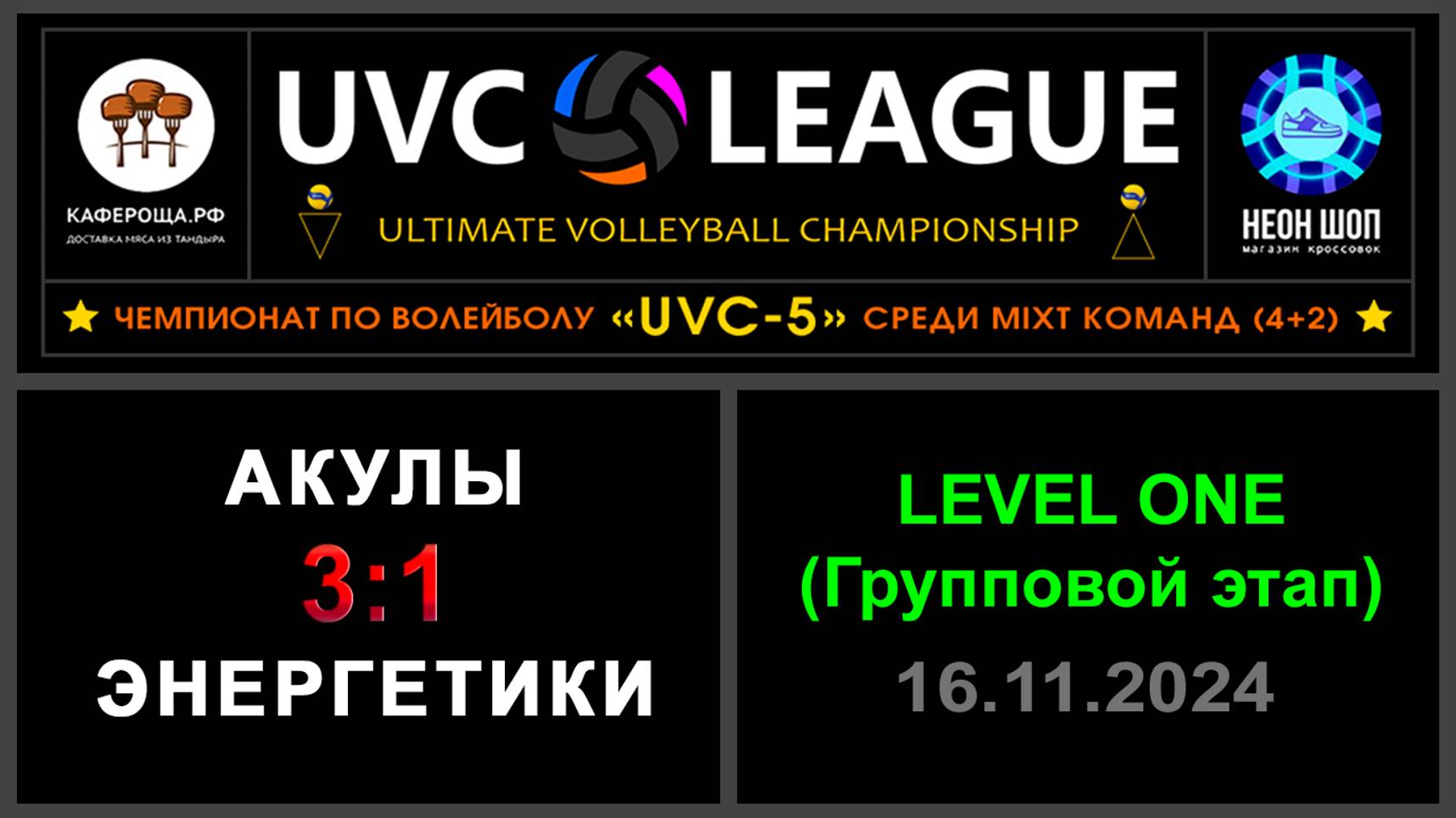 Акулы - Энергетики, UVC-5 (Mixt) - LEVEL ONE (Групповой этап)