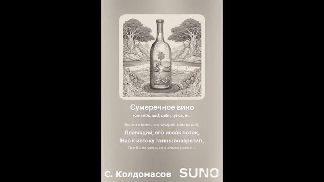 Грустно... Текст - С. Колдомасов Аудио и визуал - Suno AI Стихи: Сергей Колдомасов - "Сумеречное вино" (2020/08/29) (на сайте стихи.ру). Никакой вульгарщины или пропаганды, все совпадения чисто совпадения!