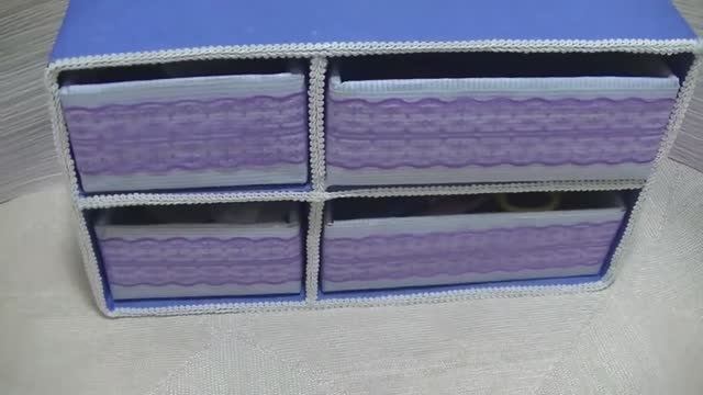 Комод из картонных коробок для хранения мелочей для рукоделия .