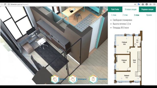 Интерактивная 3d модель таунхауса (WebGl) bim-global.ru