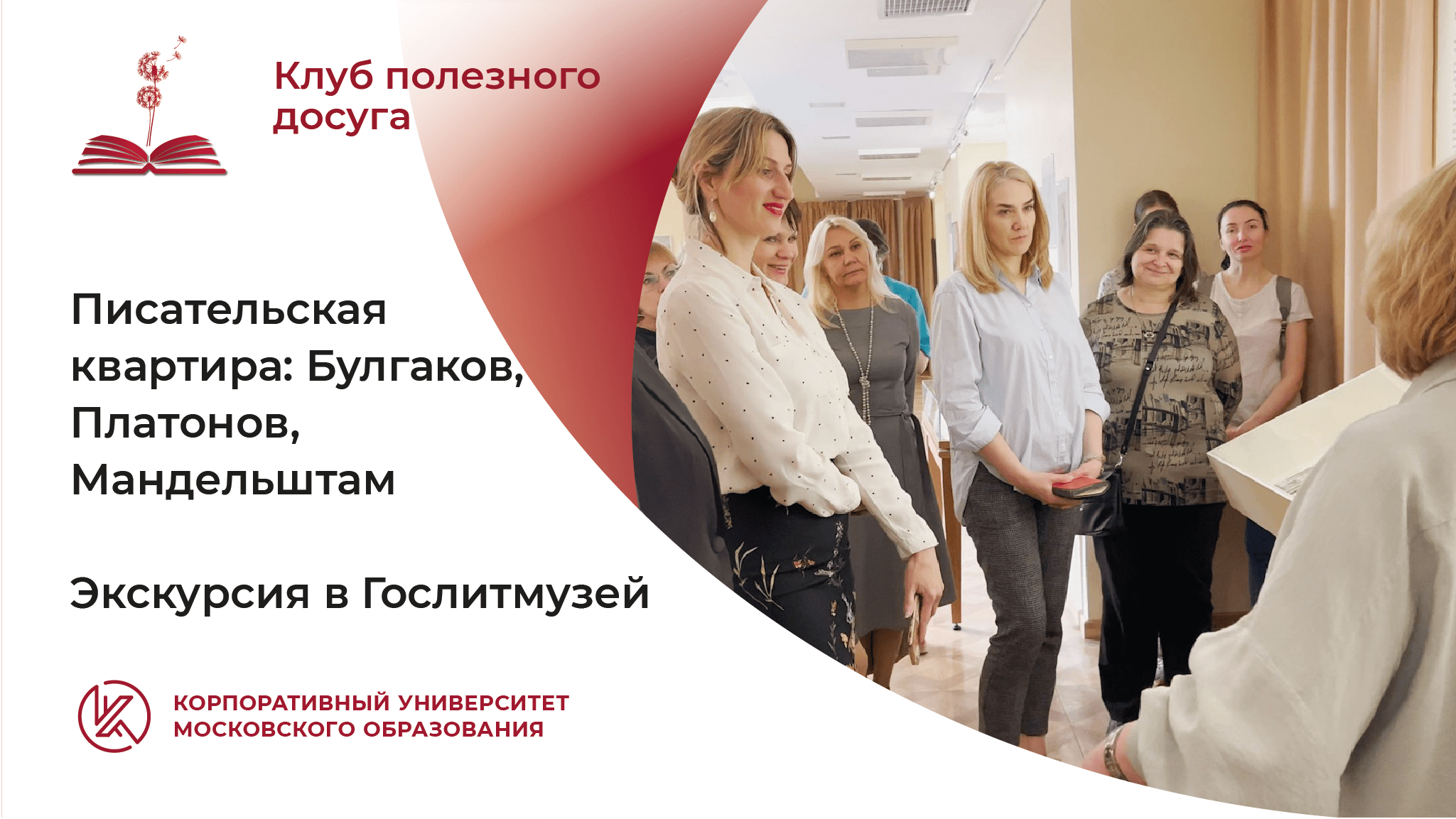 Участники Клуба полезного досуга побывали в Музее истории литературы XX века - новом отделе, который открылся в центральном здании Государственного музея истории российской литературы имени В. И. Даля. В этом доме в разные годы останавливались О. Мандельштам и В. Шкловский, М. Булгаков и А. Платонов, поэтому концепция музея воссоздает контекст времени, в котором развивалась литература в XX веке.