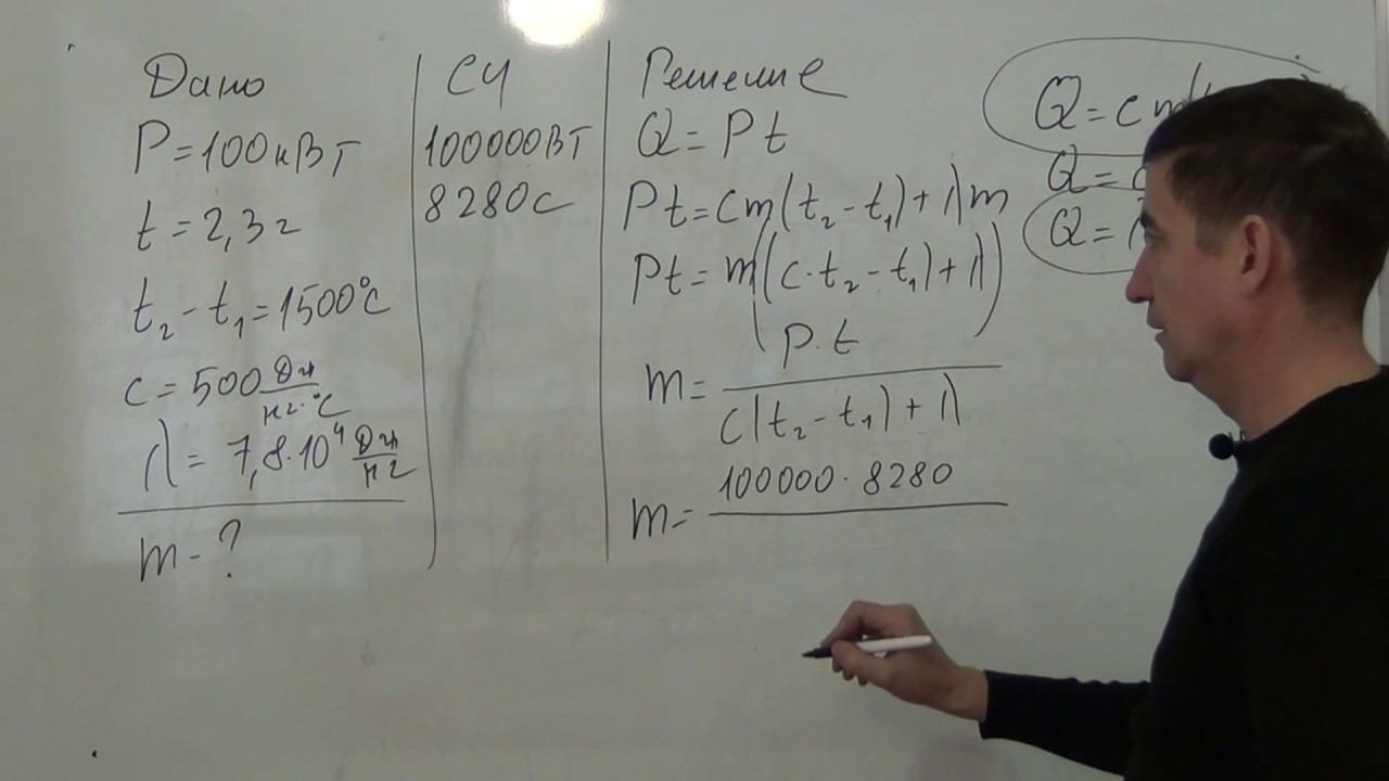 Поддержать проект Карта Сбер: 2202208836676529 (Сергей Анатольевич П.) (реквизиты актуальны до ноября 2035 г) Пополнив карту некоторой суммой денег вы покажете значимость, ценность проекта для вас, дадите толчок для создания новых роликов, а так же поможете автору с оплатой хостинга (места где хранится сайт) и продления домена fizika23.ru. Хостинг - 22 руб в сутки, домен - 900 руб - раз в год. Вашими перечислениями вы так же поддерживаете сайт для уроков физики 7-11.рф на котором находится достаточно большая подборка материала для уроков разных авторов Заранее спасибо Задача № 441 В электропечи мощностью 100 кВт полностью расплавили слиток стали за 2,3 часа. Какова масса слитка, если известно, что до начала плавления сталь необходимо было нагреть на 1500°С? Потерями энергии пренебречь.
