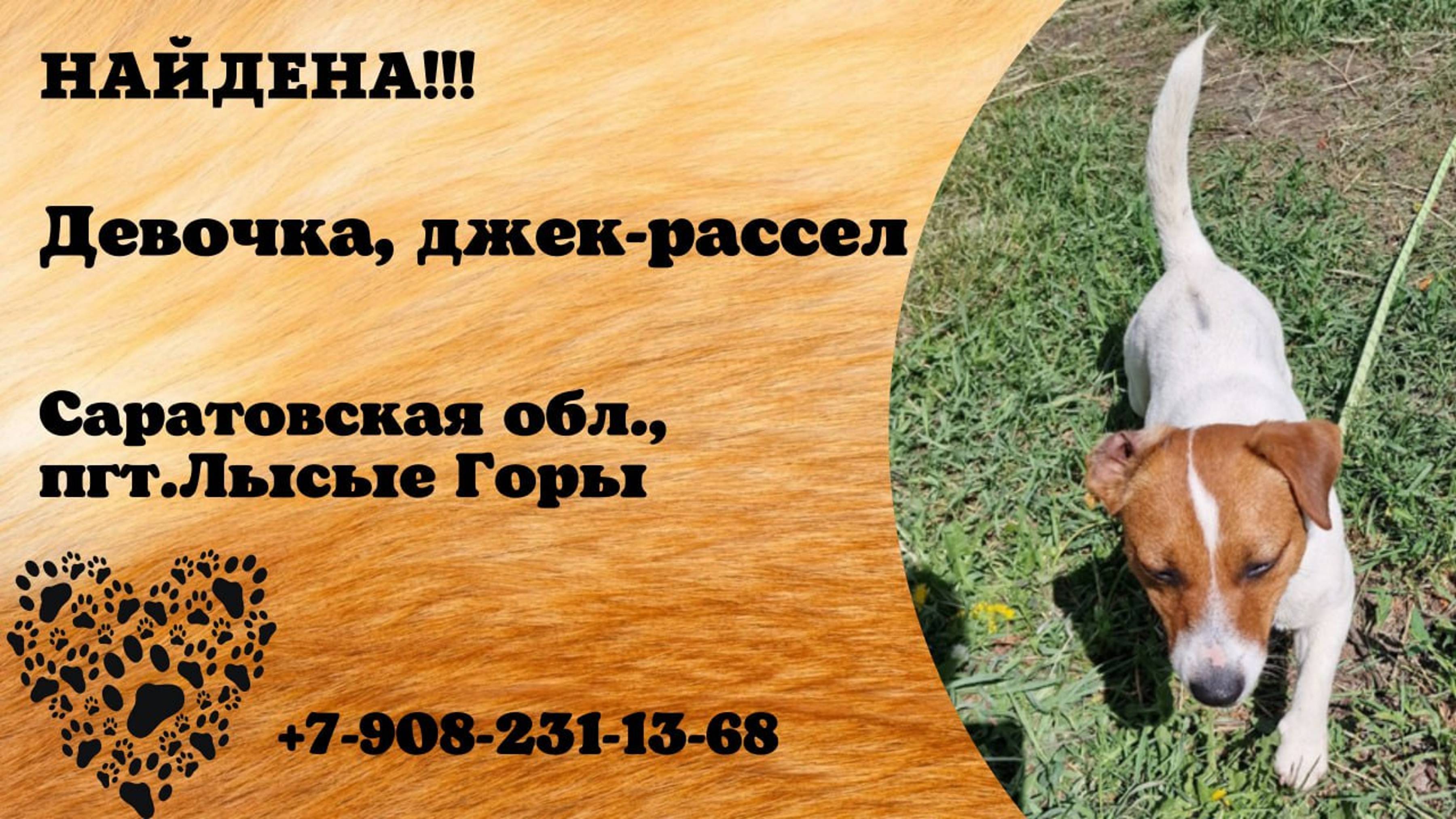 Саратовская пгт Лысые Горы Найдена собака Найдена собака породы джек-рассел терьер, девочка. С обеда 1.06.2025 была замечена на астостанции пгт Лысые Горы Саратовской области. Разгуливала без хозяина, бегала из стороны в сторону, будто кого-то искала. А уже ночью самостоятельно пришла к нам на участок. Накормили, напоили, выделили место. До сих пор она у нас. Ищем хозяина! По всем вопросам и информации: Анастасия +79082311368 Автор: https://vk.com/id61828040 Инфо https://vk.com/wall-198815410_197178 #найдена_собака #саратовская #лысые_горы