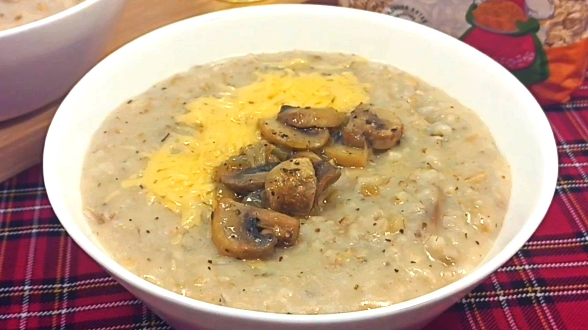 Овсянка с грибами и сыром