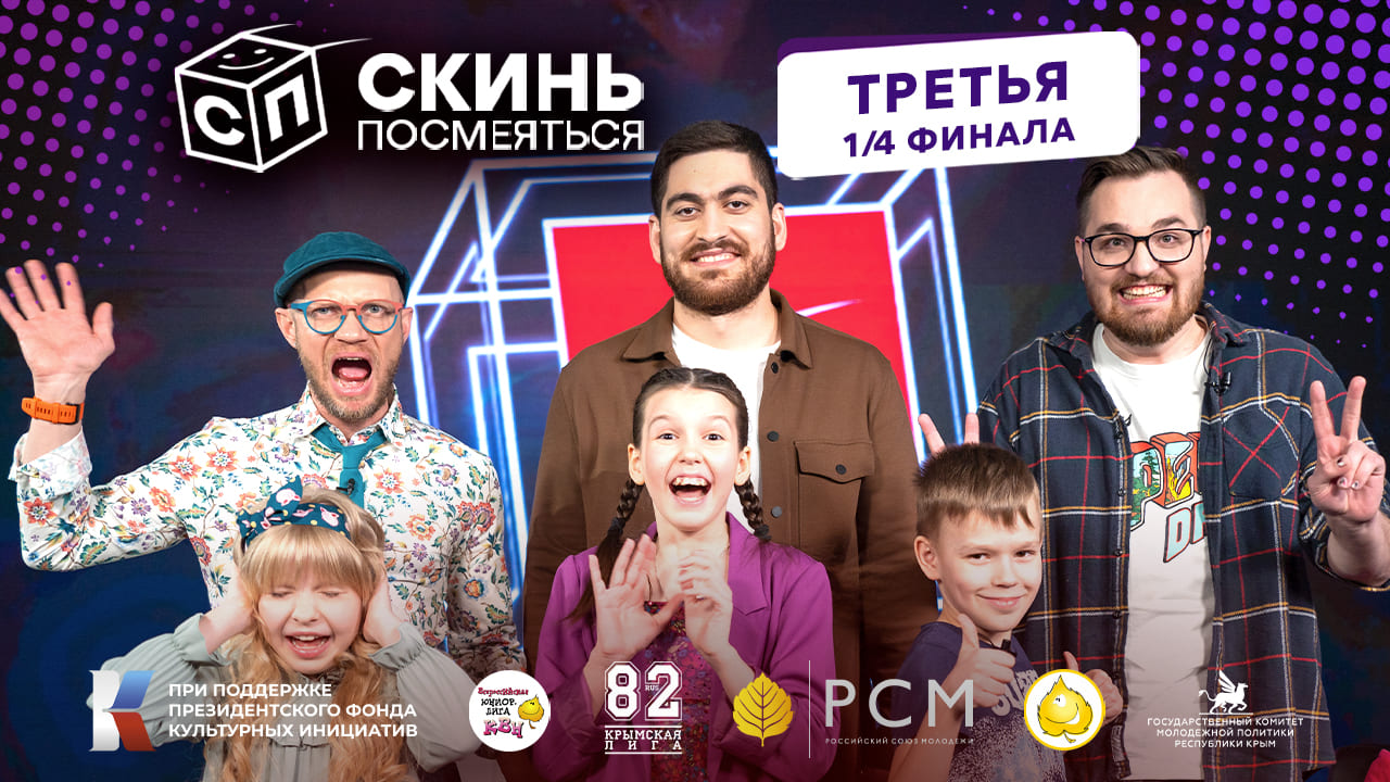 Третий выпуск 1/4 финала Чемпионата Международной детской онлайн-лиги "Скинь посмеяться!" Ведущие - Дмитрий Хрусталёв и Ева Смирнова! В жюри: - Юсиф Юсифов, чемпион Высшей лиги КВН в составе команды "Неудержимый Джо" - Дмитрий Артеев, вице-чемпион Высшей лиги в составе команды "Имени меня", сценарист ТНТ - Елизавета Чистякова и Максим Баринов, финалисты ТВ-шоу "Детский КВН" в составе команды "Золотой состав" Команды выпуска: - "Уральская юмористическая школа 13", город Миасс - "Сборная одиноких сердец", город Волгоград - "Мармеладный фарш", город Киров - "Гравити Фолз", Республика Беларусь, город Могилёв СОЦСЕТИ ПРОЕКТА: - VK.COM/SENDJOKE - T.ME/SENDJOKE #фондкультурныхинициатив #скиньпосмеяться ТАЙМКОДЫ 04:35 - Уральская юмористическая школа 14:34 - Сборная одиноких сердец 22:57 - Мармеладный фарш 32:46 - Гравити Фолз