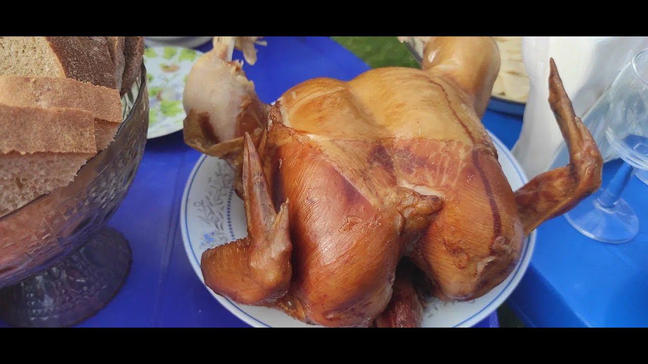 Курица горячего копчения копчёно-варёная.Коптильня для дачи.