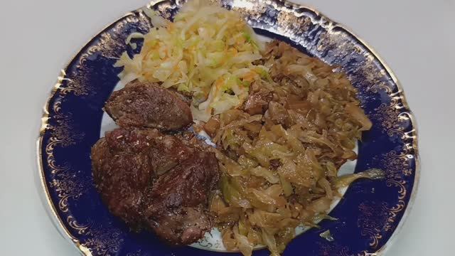 Сегодня на обед готовим свинину с капустой.