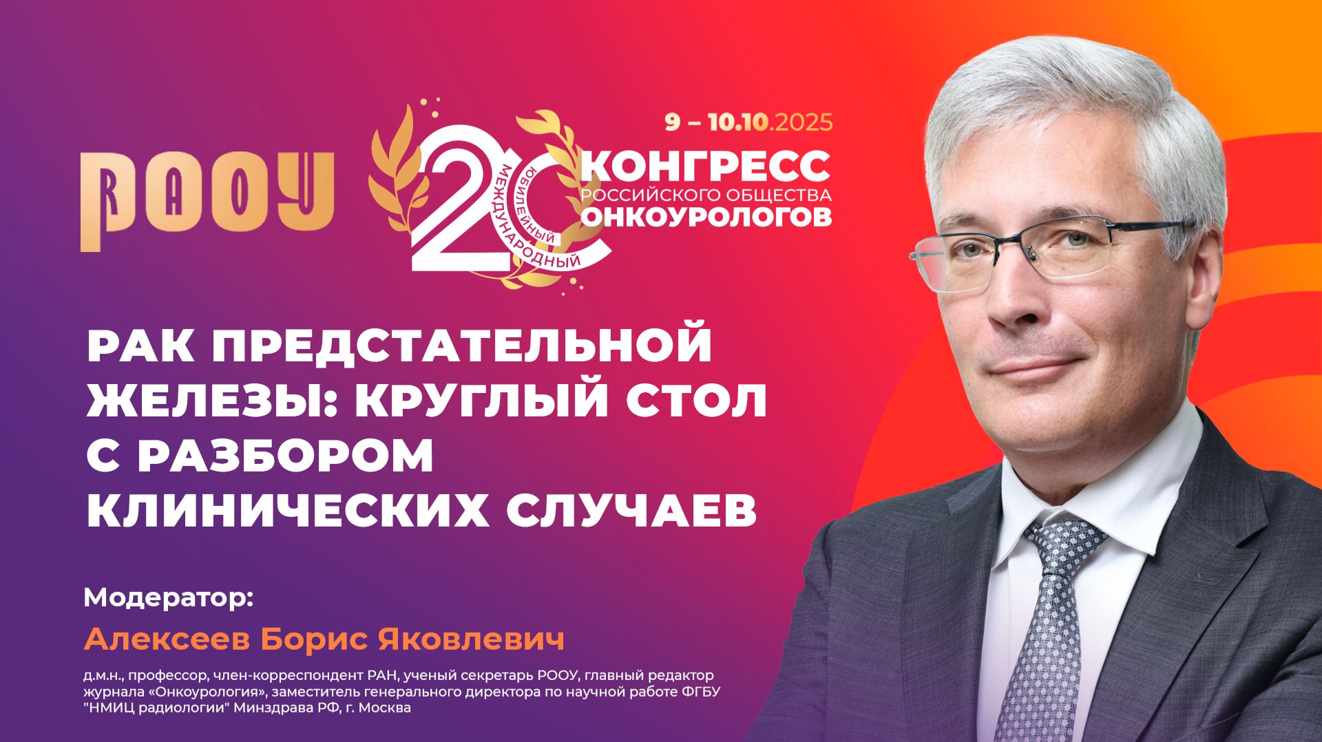 10 октября на XX Международном Конгрессе РООУ прошел круглый стол по раку предстательной железы с разбором клинических случаев. ✅ Модератор: Алексеев Борис Яковлевич, д.м.н., профессор, член-корреспондент РАН, ученый секретарь РООУ, главный редактор журнала «Онкоурология», заместитель генерального директора по научной работе ФГБУ "НМИЦ радиологии" Минздрава РФ, г. Москва. ✅ Эксперты: Атдуев Вагиф Ахмедович, профессор, член Правления РООУ, главный внештатный специалист уролог Минздрава Нижегородской области, профессор кафедры факультетской хирургии и трансплантологии ФГБОУ ВО “Приволжский исследовательский медицинский университет” Минздрава России, врач-онколог, уролог, главный специалист уролог ФБУЗ “Приволжский окружной медицинский центр” ФМБА России, г. Нижний Новгород. Безруков Евгений Алексеевич, д.м.н., профессор Института урологии и репродуктивного здоровья человека, проректор по инновационной и клинической деятельности ФГАОУ ВО Первого МГМУ им.И.М.Сеченова Минздрава России, председатель Евразийской ассоциации урологов, г. Москва. Булычкин Петр Владиславович, к.м.н., член Правления РООУ, радиотерапевт, старший научный сотрудник, ФГБУ “НМИЦ онкологии им. Н. Н. Блохина” Минздрава РФ, г. Москва. Велиев Евгений Ибадович, д.м.н., член Правления РООУ, профессор кафедры урологии ФГБОУ ДПО "Российская медицинская академия непрерывного профессионального образования" Минздрава РФ, заведующий онкоурологическим отделением ММНКЦ им. С.П. Боткина, г. Москва. Гуменецкая Юлия Васильевна, д.м.н., заведующая отделением радиотерапии, МРНЦ им. А.Ф. Цыба - филиал ФГБУ "НМИЦ радиологии" Минздрава РФ, г. Обнинск. Колесников Геннадий Петрович, д.м.н., профессор кафедры онкологии медицинского института непрерывного образования ФГБОУ ВО «Росбиотех», онколог-уролог, г. Москва. Поляков Сергей Львович, д.м.н., член Правления РООУ, профессор, директор государственного учреждения "Республиканский научно-практический центр онкологии и медицинской радиологии им. Н. Н. Александрова", Республика Беларусь, Минский район. Пушкарь Дмитрий Юрьевич, д.м.н., профессор, академик РАН, заслуженный деятель науки РФ, заслуженный врач РФ, член Правления РООУ, главный уролог Минздрава РФ, заведующий кафедрой урологии ФГБОУ ВО "Московский государственный медико-стоматологический университет им. А. И. Евдокимова" Минздрава РФ, г. Москва. Рапопорт Леонид Михайлович, д. м. н., профессор, заместитель директора Института урологии и репродуктивного здоровья человека, директор клиники урологии им. Р. М. Фронштейна Первого МГМУ им. И. М. Сеченова, г. Москва. ➡️ Официальный сайт РООУ: https://roou.ru/ Присоединяйтесь к нам в социальных сетях. Делитесь мнением и повышайте уровень теоретической и практической подготовки в онкоурологии: Telegram: https://t.me/oncologyurology ВКонтакте: https://vk.com/oncologyurology #РООУ #RAOU #ОбществоОнкоурологов #Онкоурология #Урология #Онкология #Oncourology #XXКонгрессРООУ #КонгрессРООУ #ракпочки #медицинскиеконференции #urology