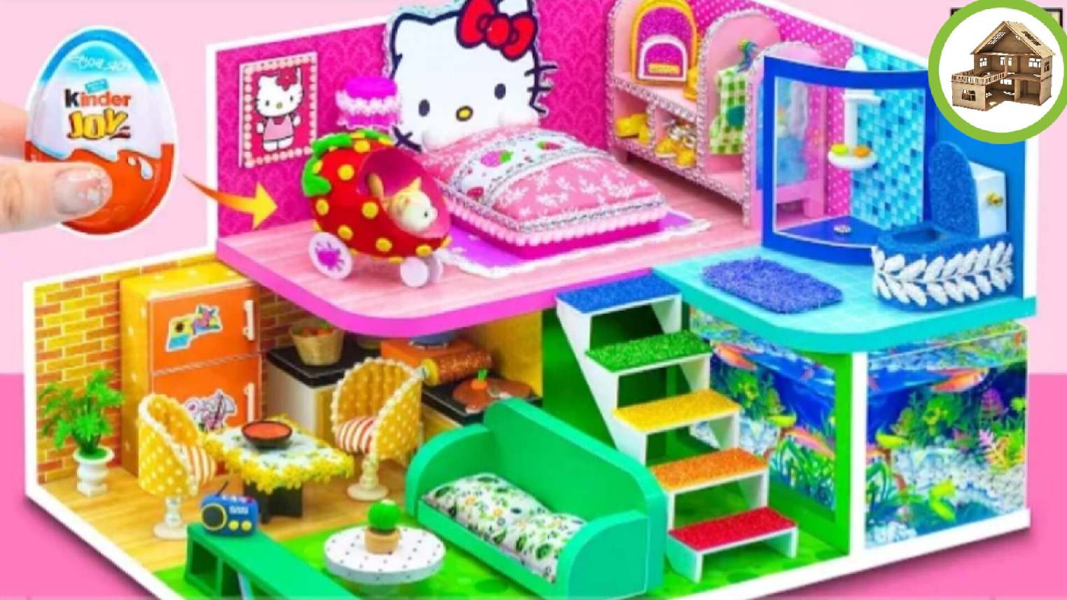 Милый 4-х цветной миниатюрный домик с аквариумом и черепахой из картона #42