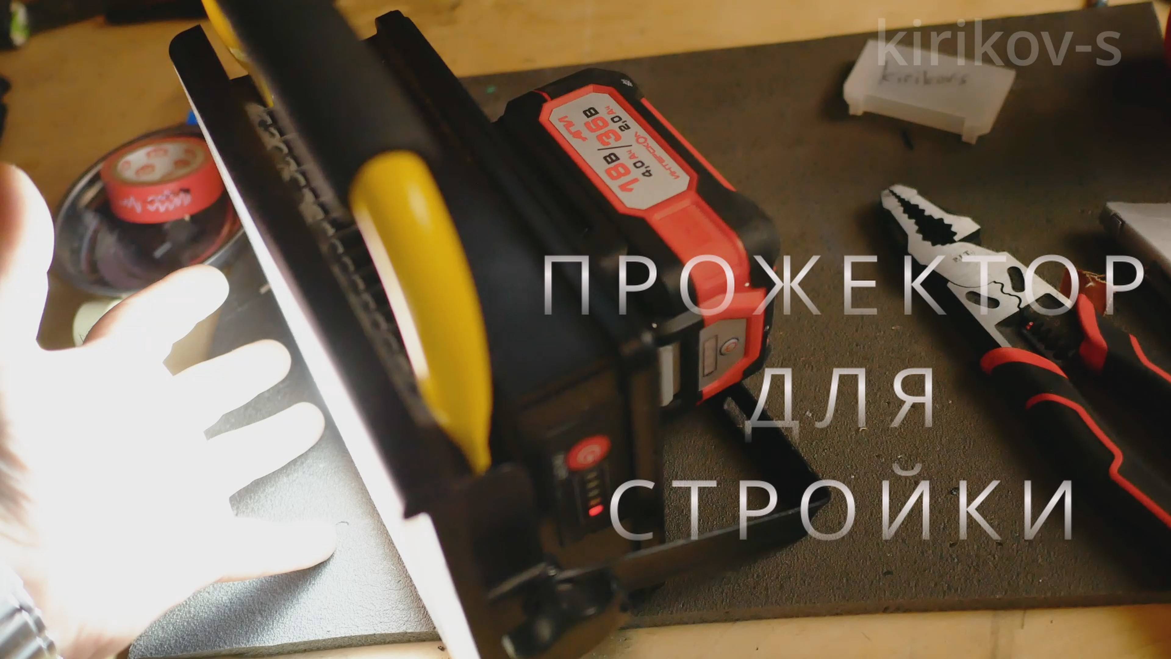 перевёл прожектор на батареи от электроинструмента Интрерскол. чуть позже засуну туда "гибридное питание" - возможность работы и от сети 220в без внешнего блока