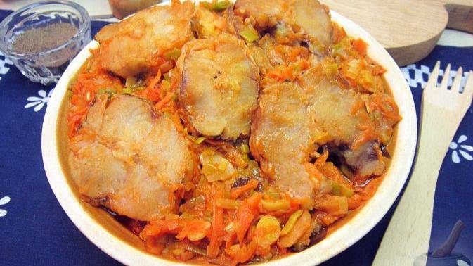 Рыба, приготовленная таким способом, получается сочной, ароматной и очень вкусной. Белая рыба тушится с овощами и томатом. Блюдо достаточно простое в приготовлении и хорошо сочетается со многими гарнирами. #ХекСовощами #ХекПодСоусом #РыбаСОвощами #ТушенаяРыба #СочнаяРыба