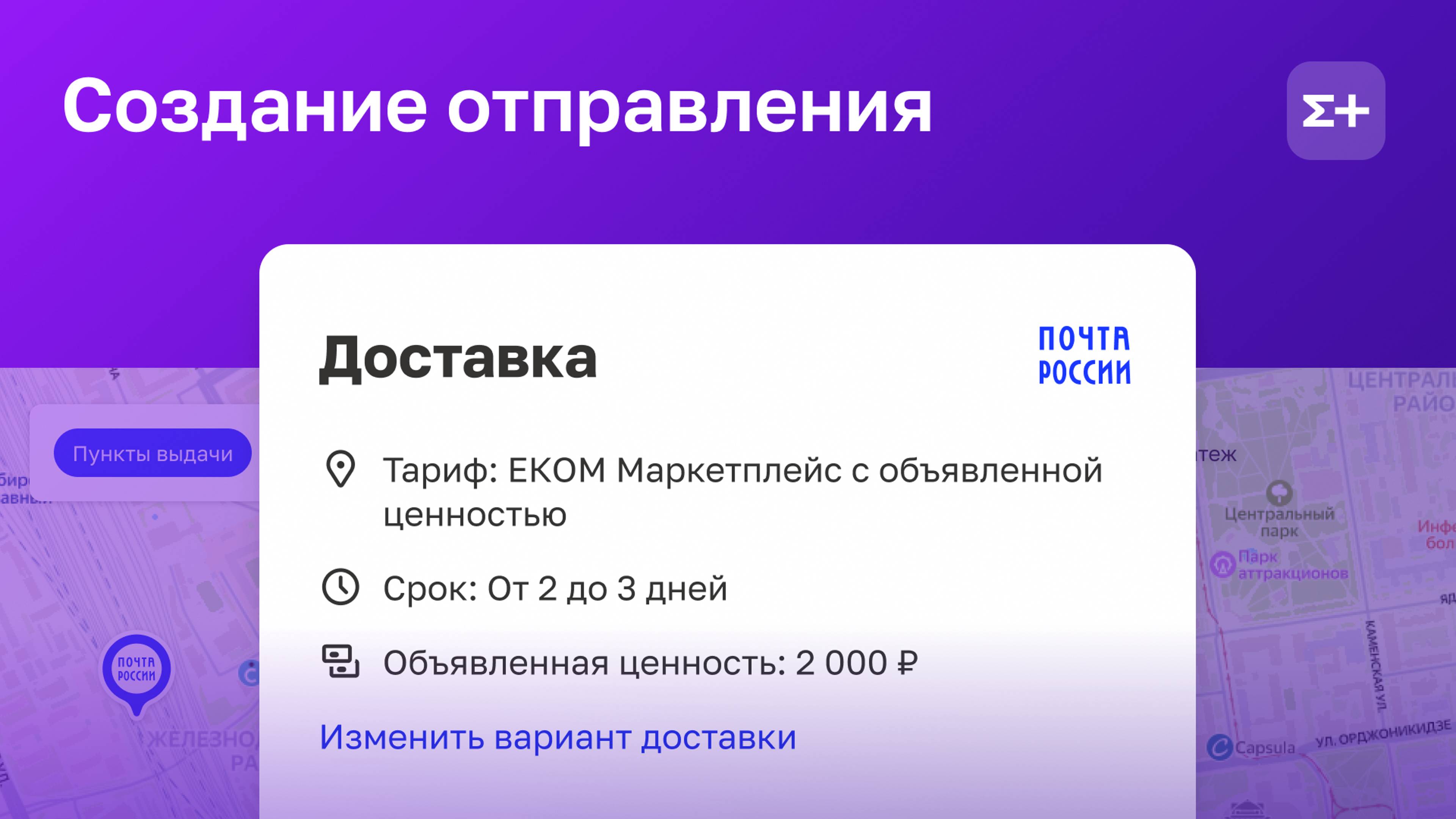 Создание отправления на платформе ЕКОМ+
