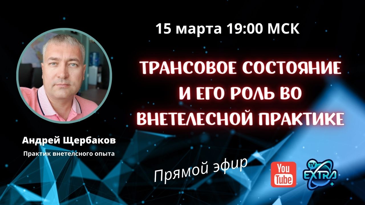 Основные темы прямого эфира 15 марта: 1. Трансовое состояние и его роль во внетелесной практике: - как входить - особенности - как удерживаться 2. Ошибки практики 3. Истории из практики ВТО Страница Андрея Щербакова https://probujdenie.ru/experts/andrej-shherbakov/ Регулярные вебинары Андрея Щербакова онлайн и в записи https://probujdenie.ru/vto_webinary/ ______ подписывайтесь на телеграмм канал ТВ Экстра: https://t.me/nepoznannoe_online