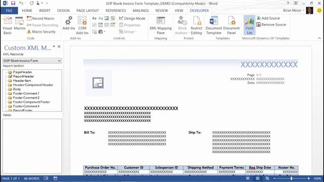 Business Intelligence in Microsoft Dynamics GP 2013 03 Word Templates
