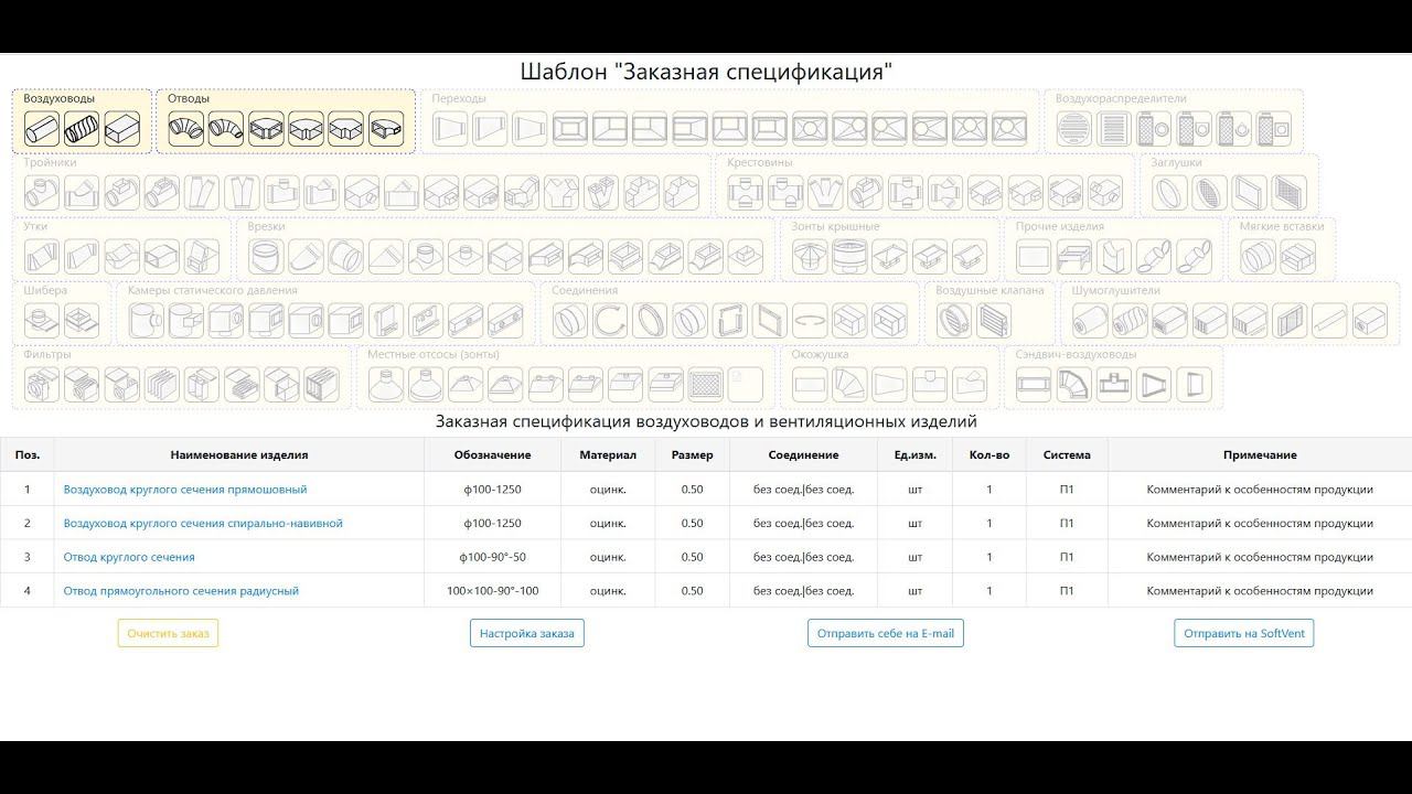 Загрузка заказа в программу "СофтВент Вентиляция" с собственного сайта