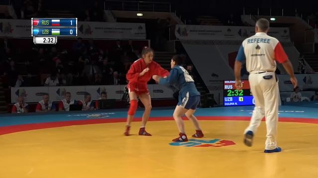 MOLCHANOVA (RUS) vs GULOVA (UZB). World SAMBO Championships 2018 in Romania
