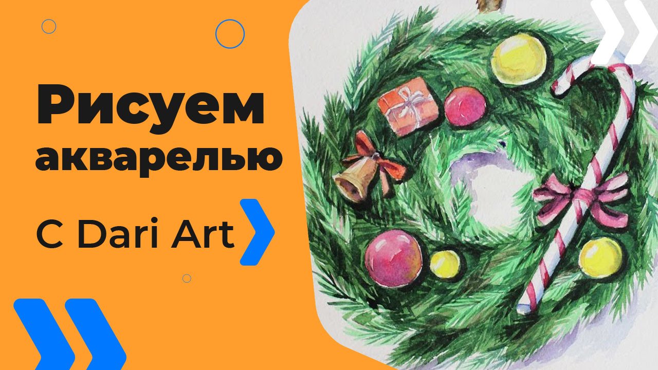 Бесплатный урок рисования! Как нарисовать новогодний венок акварелью! Для начинающих!